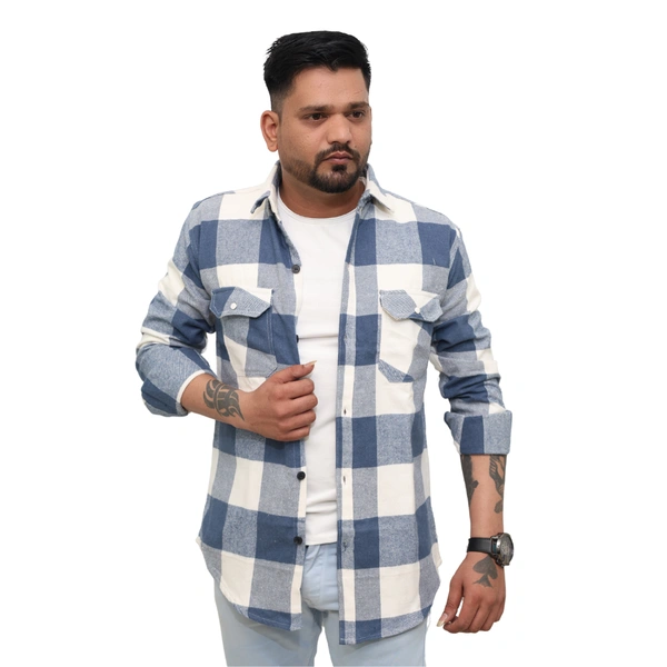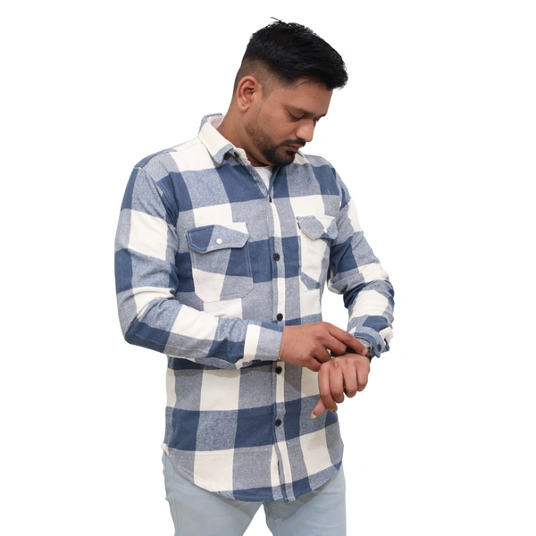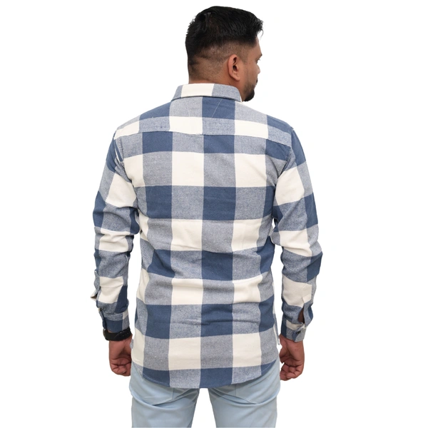 Bring effortless style to your casual wardrobe with this blue and white checkered shirt from Look Me Apparel. Made from soft and breathable brushed cotton flannel, this shirt is ideal for all-day comfort and cool-weather layering. The casual fit and classic large checks make it a versatile choice for outings, weekend wear, or everyday style. Pair it with jeans or chinos for a fresh and relaxed look