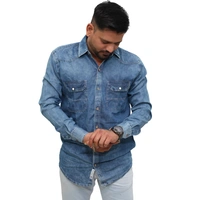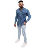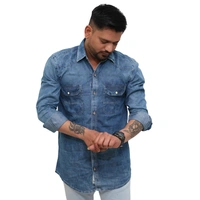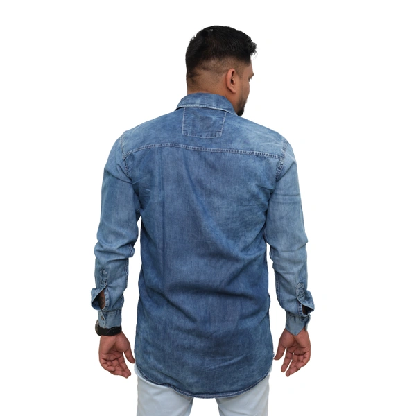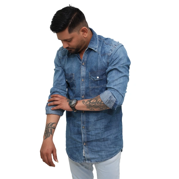 Look Me Apparel Men Washed Denim Blue Shirt | Full Sleeve | Casual Fit | Dual Pockets