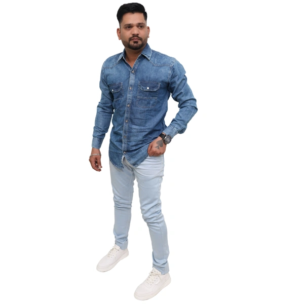 Add a bold edge to your wardrobe with this washed denim blue shirt from Look Me Apparel. Featuring an eye-catching acid-wash finish and double chest pockets, this shirt strikes a perfect balance between rugged style and comfort. The premium cotton-rich denim fabric offers durability and a soft touch, while the casual fit keeps you relaxed throughout the day. Pair it with jeans or chinos for a confident and trendy casual look, ideal for outings, travel, or streetwear fashion.